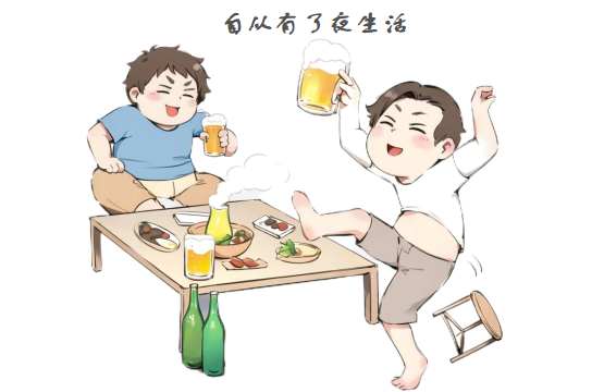 饮食习惯:抽烟、喝酒、吃饭没有酱油不行、每天都夜宵等